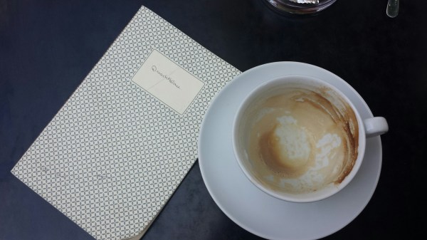 Im Café. Der Kaffee ist heute stark, fast zu stark. Menschen laufen vorbei. Die Sonne scheint, aber es ist noch kalt. Ein schöner Februartag, der schon ein Hauch Frühling verspricht.