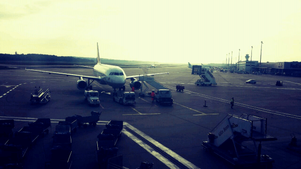 wie wir am Flughafen standen,